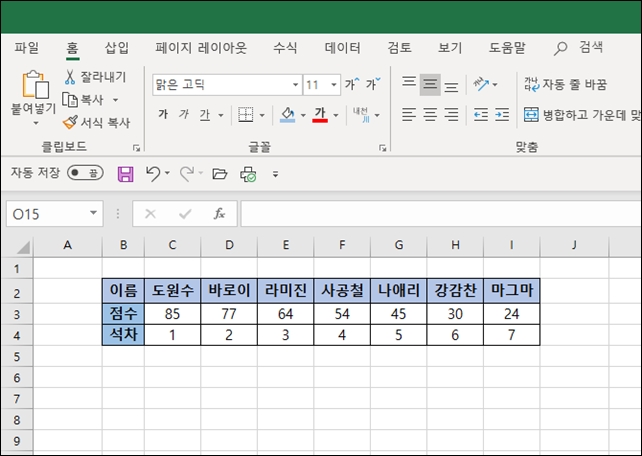 오늘은 엑셀에서 가로방향 정렬하는 방법을 소개합니다.