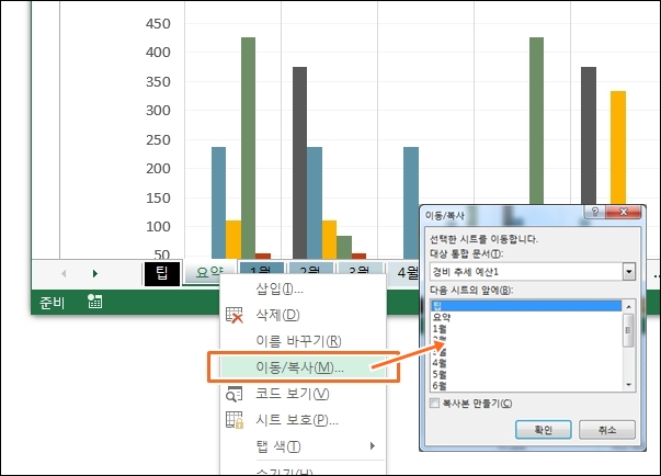 복사할 시트를 선택한 후