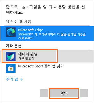 5. 확장자에 연결된 앱을 다른 웹브라우저로 변경합니다. ▼