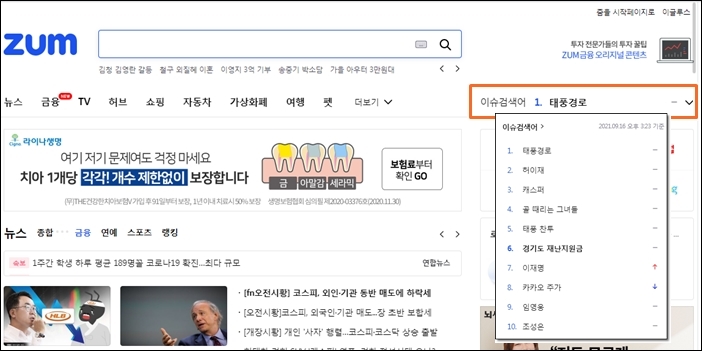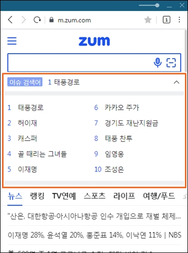 1. ZOOM 포털의 '이슈검색어'
