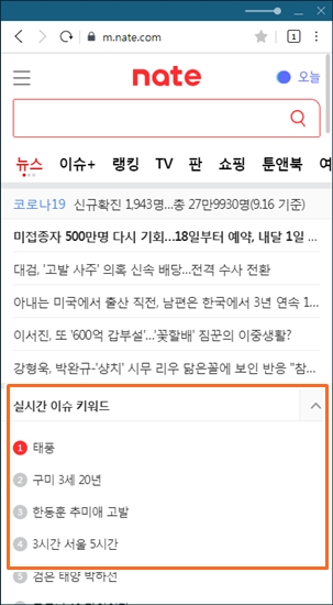 2. 네이트(NATE)의 '실시간 이슈 키워드'