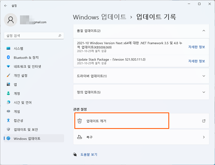 윈도우 11에서 이런 업데이트를 영구적으로 중단할 수는 없지만, 문제가 되는 업데이트를 선택 제거하고 일시적으로 일시 중지할 수 있습니다.