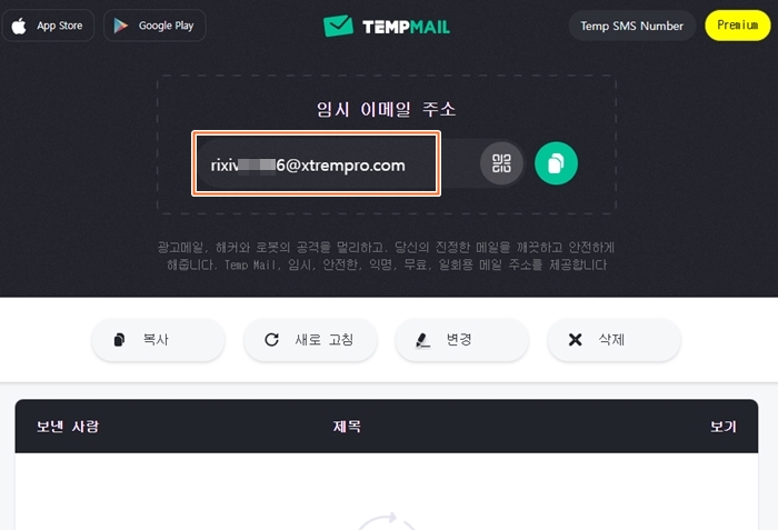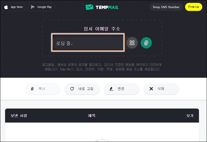 1. 여기를 클릭, 해당사이트를 방문하면 바로 임시 이메일 주소를 생성합니다. 잠시만 기다리세요. ▼