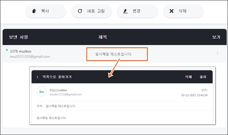 3. 이메일 수신을 테스트 해보았습니다. 그림과 같이 정상적으로 수신이 됩니다. ▼