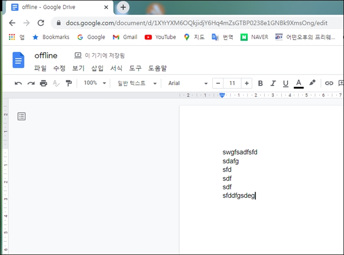 6. 오프라인에서 구글 문서로 작업하는 화면입니다. 오프라인에서는 일단 작업하는 문서들이 자동으로 사용중인 기기에 저장이됩니다. ▼