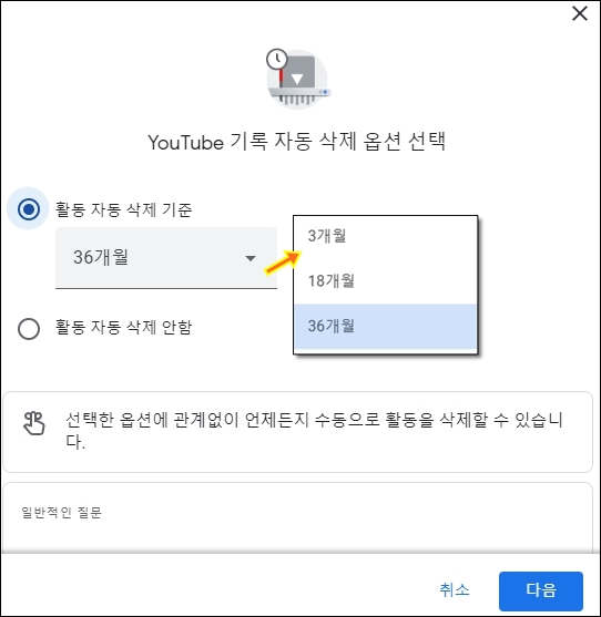 2-4. 기간을 지정하여 자동삭제를 할 수도 있습니다. 그림과 같이 자동삭제를 선택한 후 기간을 지정하면 됩니다. ▼