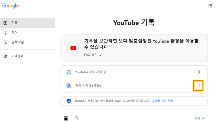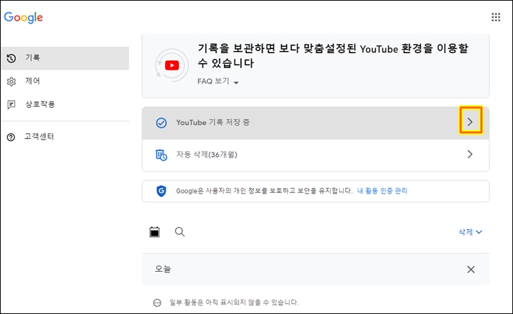 2-2. 'YouTube 기록 저장중'을 선택합니다. ▼