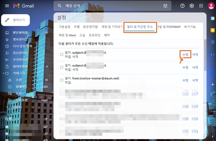 c. 방금 만든 필터를 찾아 "수정"을 클릭합니다. ▼