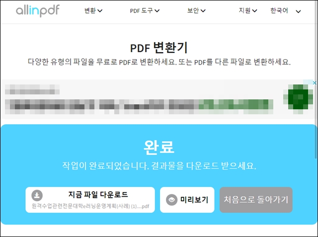 3. 변환이 완료되면 미리보기 또는 변환된 파일을 다운로드 하면 됩니다. ▼