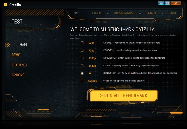 Catzilla는 일련의 까다로운 테스트를 통해 그래픽 카드의 성능을 테스트하는 독특하고 시각적으로 인상적인 GPU 벤치마킹 툴입니다. 이 프로그램은 상세한 결과와 비교를 제공하므로 GPU 설정을 최적화하려는 사용자에게 적합합니다.