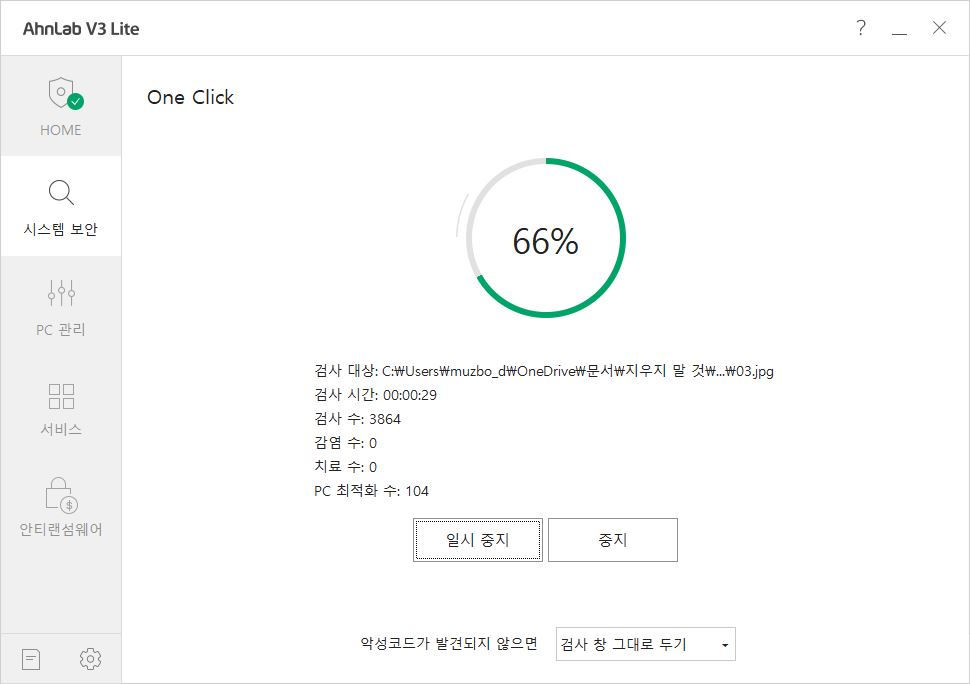 2. 메인 화면에서 기능 선택: 프로그램을 실행한 후 메인 화면에서 다양한 기능 중 원하는 기능을 선택합니다. 여기에는 PC 최적화, 빠른 검사, 전체 검사 등이 포함됩니다.