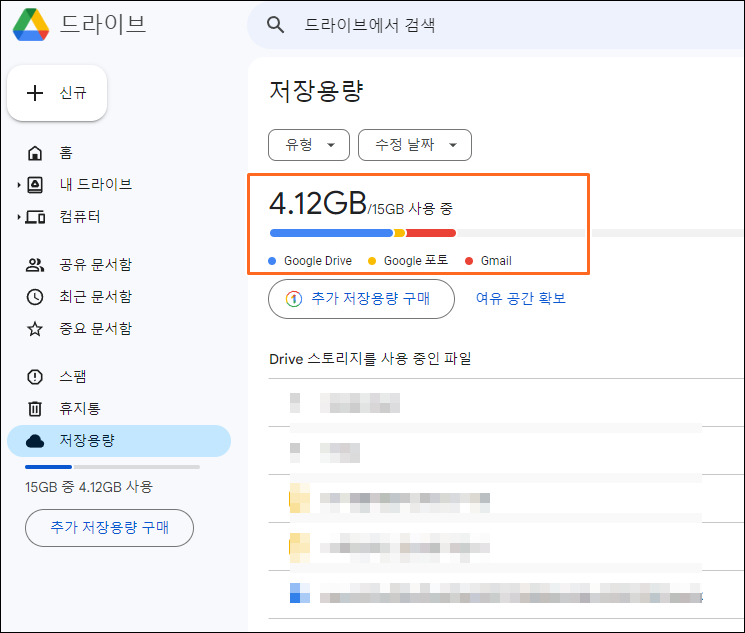 Google 드라이브에서 Gmail 저장 용량 확인하기