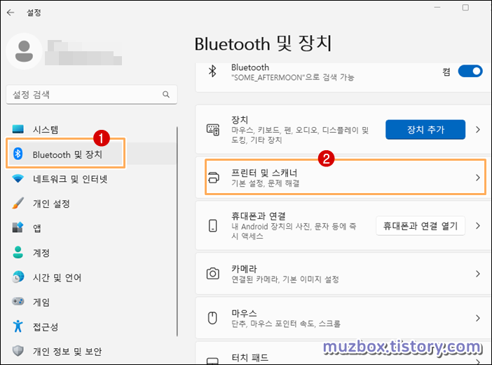 1. 설정 - Bluetooth 및 장치 를 선택