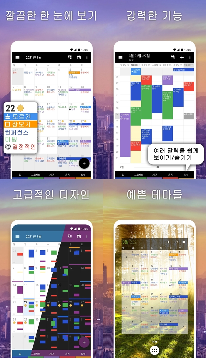 날씨, 위젯, 테스크를 포함한 강력하고 손쉬운 캘린더 앱