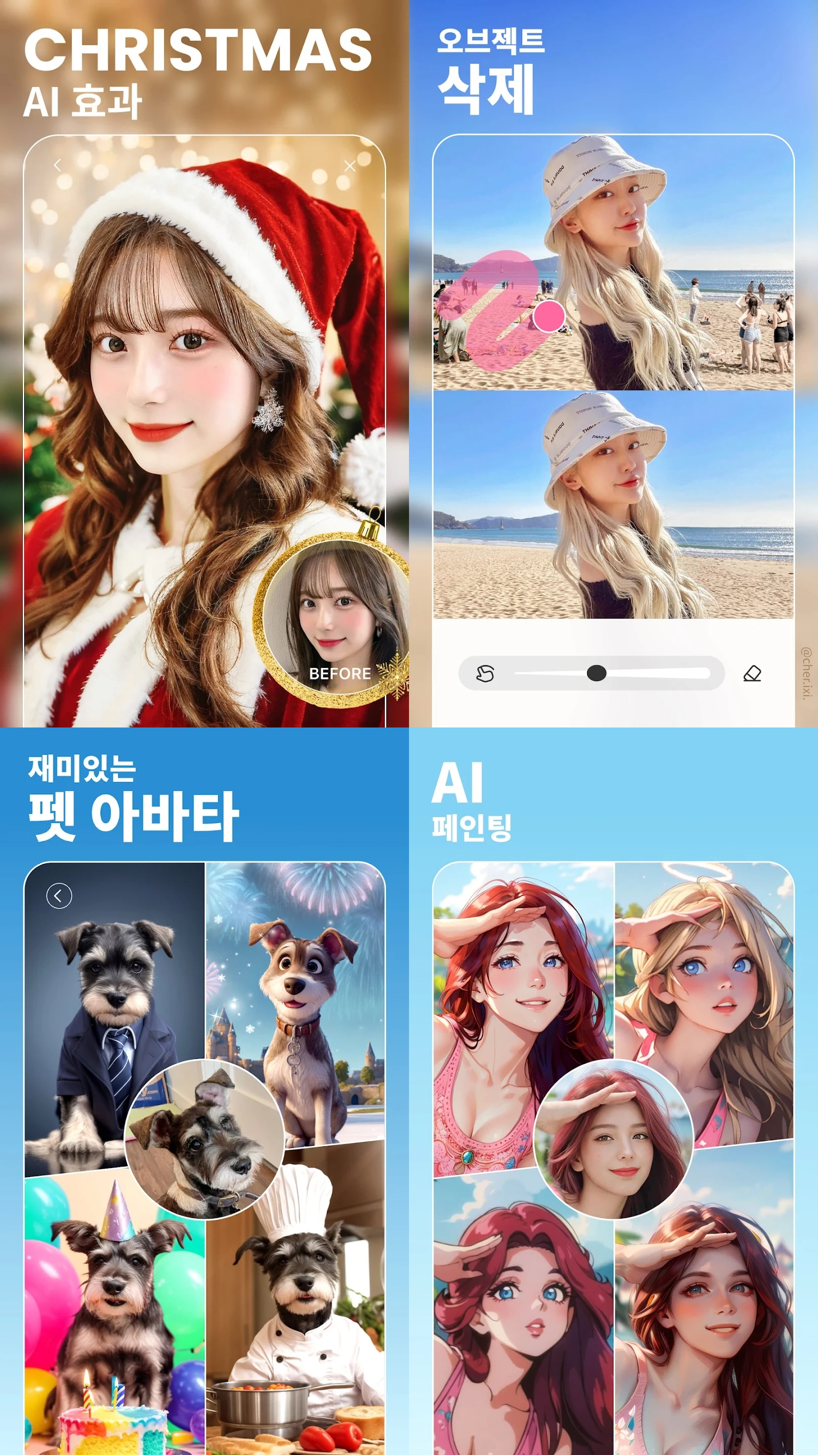 AI 아바타, 페이스 앱, 메이크업 도구, 카툰 필터, 배경 삭제 등 50종 이상의 편집 도구를 갖춘 셀피 카메라 및 사진 편집 앱입니다. 이 앱은 전 세계 8억 명의 사용자에게 완벽한 셀카를 제공하는 놀라운 AI 자동 보정 도구를 포함하여 다양한 필터, 스티커, 특수효과 등으로 셀피를 멋지게 꾸미는 기능을 제공합니다.
