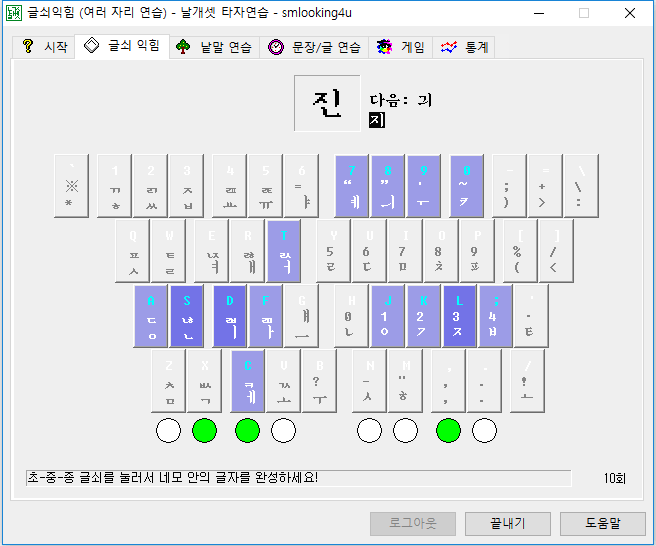 2. 연습 모드 선택: 메인 화면에서 원하는 연습 모드를 선택합니다. 초보자는 글쇠익힘을 시작하여 기본 연습에서 시작하는 것이 좋습니다.