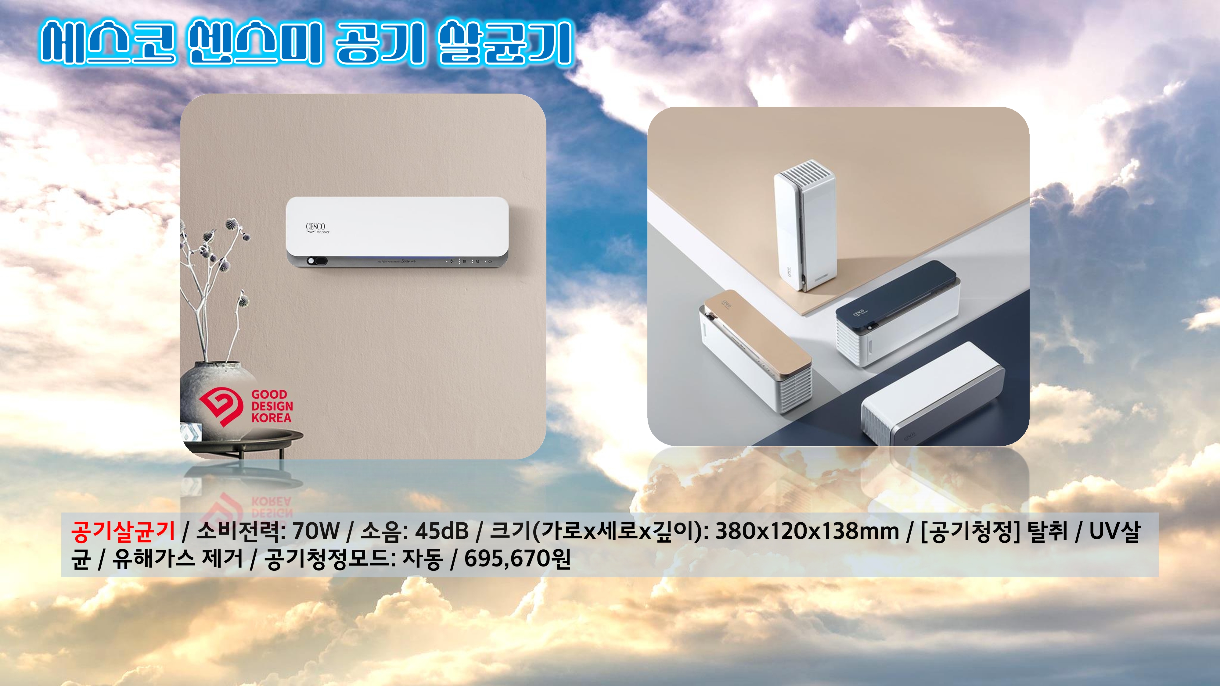 세스코 센스미 VS-510M: UV-C 살균 기술로 깨끗한 공기 제공