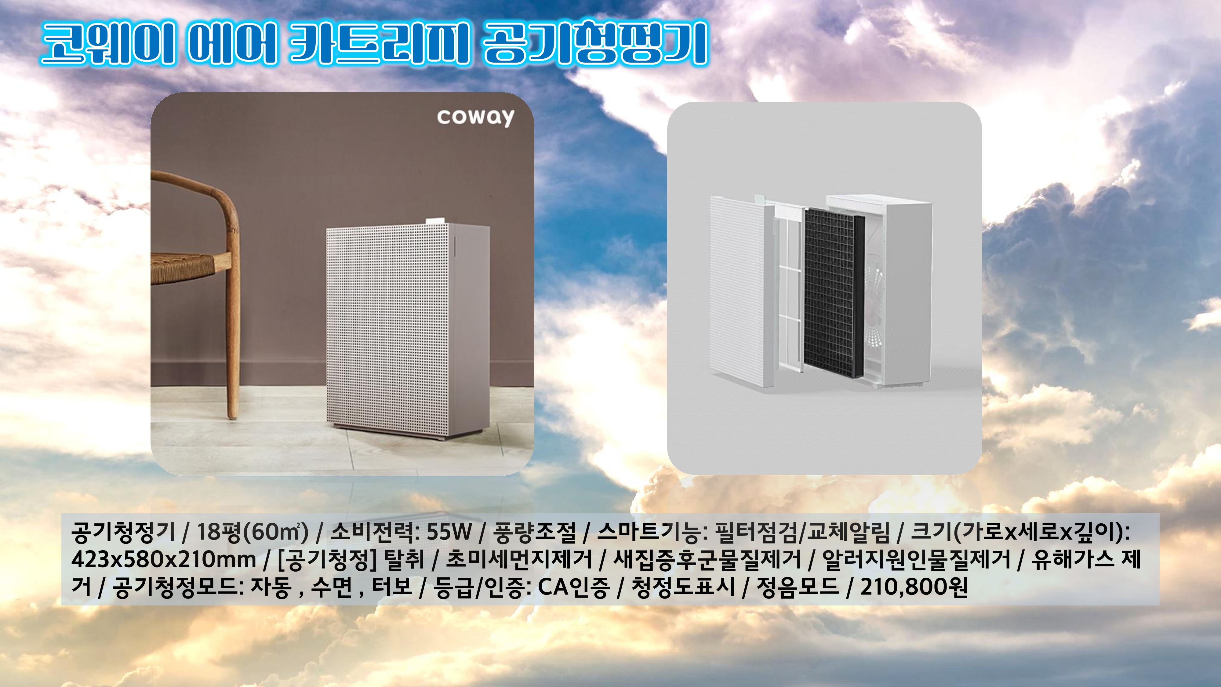 지금까지 성능과 가성비를 겸비한 공기청정기 4종을 소개해드렸습니다. 각 제품은 각기 다른 특징과 장점을 가지고 있으므로, 자신의 생활 환경과 필요에 맞는 제품을 선택하는 것이 중요합니다. 넓은 공간을 위한 공기청정기를 찾는다면 삼성 블루스카이나 위고 에어케어를 추천드리며, 살균 기능에 중점을 둔다면 세스코 센스미가 좋은 선택입니다. 코웨이 AP-1821F는 전반적으로 균형 잡힌 성능과 편리한 유지관리로 누구에게나 적합한 제품입니다.